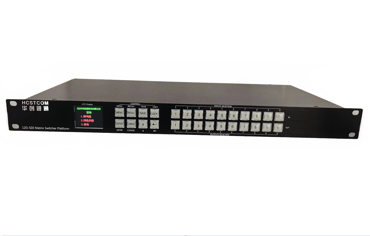 The 12G-SDI 16x16 matrix switcher supports high format resolution, high frame rate (HFR), and deep color formats, while reducing cable count when transmitting 4K/UltraHD via SDI. 12G-SDI 16x16 matrix switcher is widely used in broadcasting, live broadcasting, large-scale concerts, sports events, multi-media teaching, and a variety of event venues.